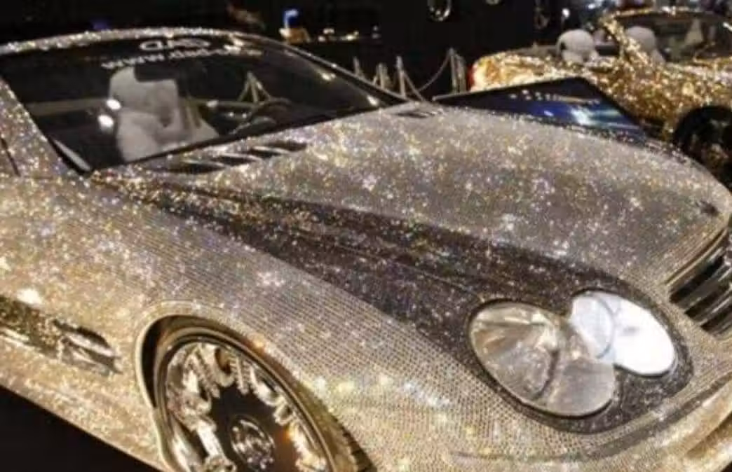 這輛車之所以出名,就是因為妮塔把老公送的愛車全身鑲滿了鉆石,據當時貼鉆的工人回憶,整個車身足足有3萬顆鉆。