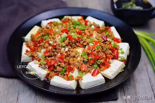 第一步:準備食材。豆腐1塊、豬肉餡150克、蔥姜蒜適量、香蔥適量。(滷水豆腐、內脂豆腐都可以)