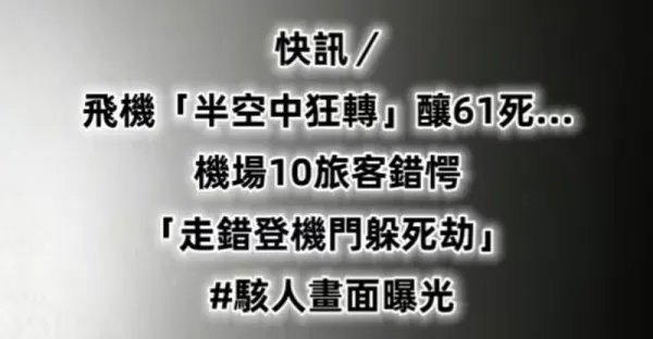 快訊/飛機「半空中狂轉」釀61死... 機場10旅客錯愕「走錯登機門躲死劫」 #駭人畫面曝光