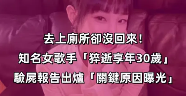 去上廁所卻沒回來!知名女歌手「猝逝享年30歲」, 驗屍報告出爐「關鍵原因曝光」