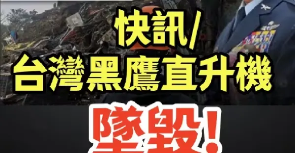 快訊/台灣黑鷹直升機墜毀,參謀總長沈一鳴等八人死亡...