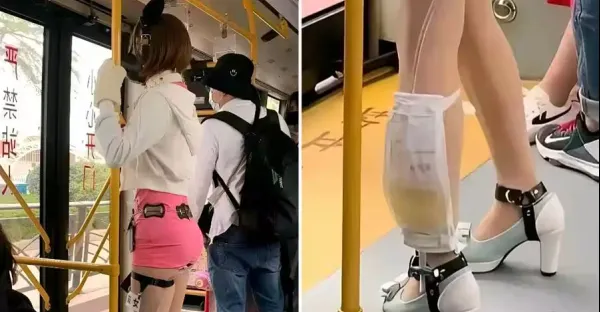 公車上,一位「艷麗妖嬈奇裝女」超搶眼!內行一看她腿,秒懂真相「笑不出來了」全車瞬間沉默