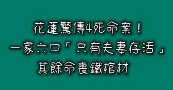 快訊/花蓮驚傳4死命案!一家六口「只有夫妻存活」其餘命喪鐵棺材
