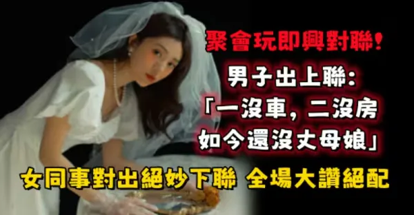 聚會玩即興對聯!男子出上聯:「一沒車,二沒房,如今還沒丈母娘」 女同事「對出絕妙下聯」全場大讚絕配