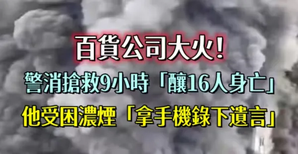 快訊/百貨公司大火!警消搶救9小時「釀16人身亡」 他受困濃煙「拿手機錄下遺言!」