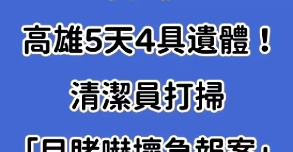 快訊/高雄5天4具遺體!清潔員打掃「目睹嚇壞急報案」