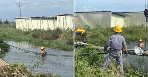台電員工7天沒回家!半身泡水溝修電線桿,妻見工作照淚崩:是我老公
