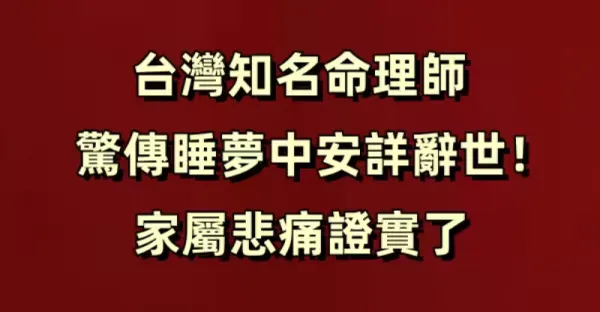 突發/台灣知名命理師驚傳睡夢中安詳辭世!家屬悲痛證實了