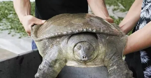 男子花25000元買一隻86斤酒店待烹飪大鱉,放生時大鱉頭部的一個動作,讓岸上人驚慌失措
