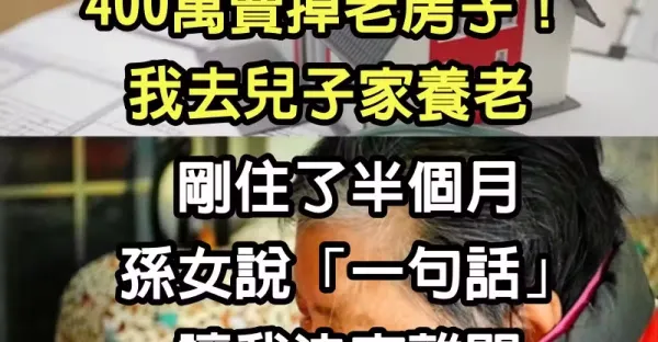 我今年73歲,前兩年老伴走了,我一人住在鄉下老家,兒子媳婦不放心。我決定400萬賣掉老房子,去兒子家養老。但才剛住半個月「孫女一個無心舉動」 讓我決定離開