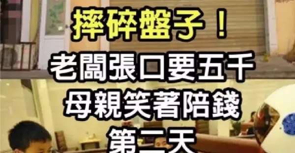 孩子飯店吃飯摔碎盤子,老闆張口要五千,母親笑著陪錢第二天餐館倒閉了