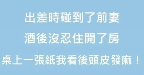 出差時碰到了前妻,酒後沒忍住開了房,隔天桌上有一張紙,我看了以後頭皮發麻‼️