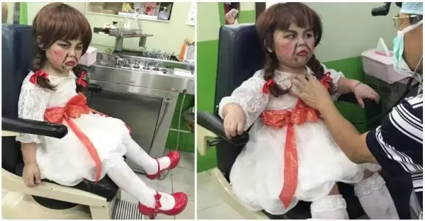給我小心點!萌弟「萬聖節扮安娜貝爾」來不及卸妝 急忙赴診「近看眼神超哀怨」:敢打針就跟你拚