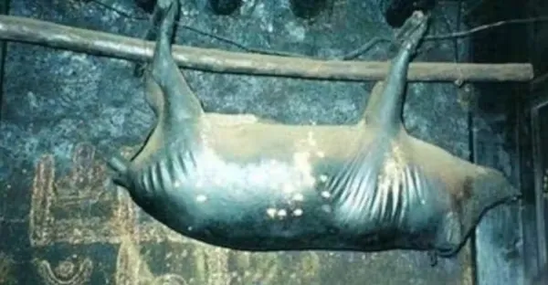 房樑上懸掛的一頭豬,30年了,有人出幾十萬買來吃