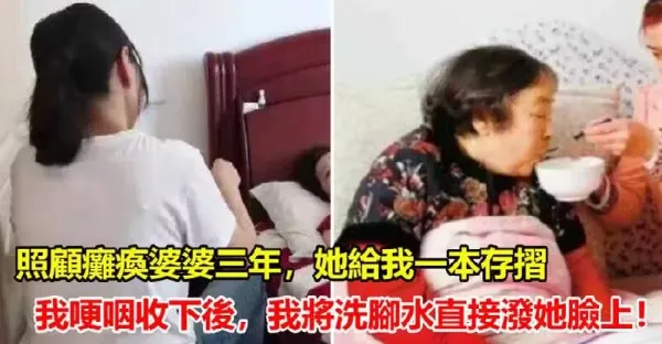 照顧癱瘓婆婆三年,她給我一本存摺我哽咽收下後,我將洗腳水直接潑她臉上