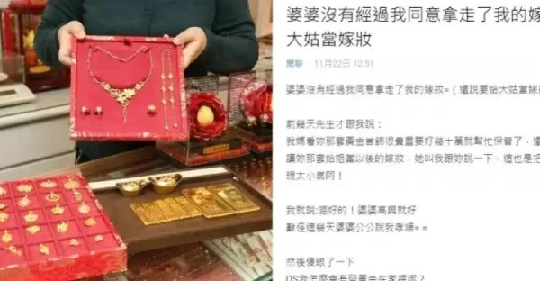婆婆隨意拿走金飾,要老公轉告「給大姑當嫁妝,別計較太多」她一聽愣住了「房間沒有黃金啊」