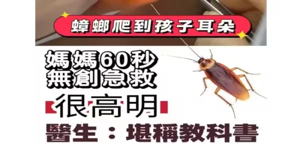 蟑螂爬到孩子耳朵 媽媽60秒無創急救很高明 醫生:堪稱教科書