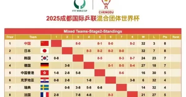央視直播桌球混團世界盃,賽程過半,中日兩國保持全勝,其他國家呢?附賽程