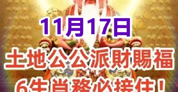 11月17日:土地公公派財賜福,6生肖務必接住!接了就有頭獎中!