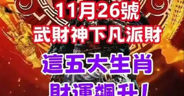 11月26號,武財神下凡派財,這五大生肖財運飆升!