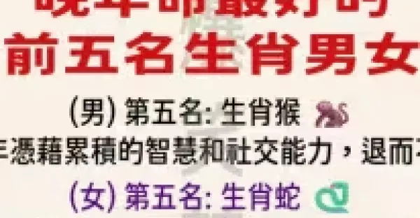 晚年命最好的前五名生肖男女