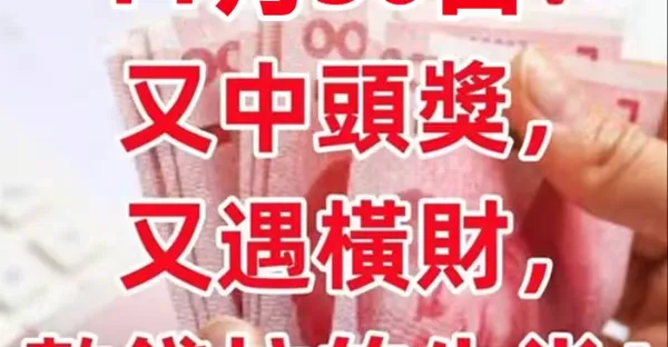 11月30日(11月最後一天)又中頭獎 ,又遇橫財,數錢忙的生肖!