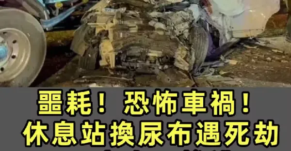 噩耗!休息站換尿布遇死劫 一家十口慘遭重型拖車撞擊 ( 8死2傷 )