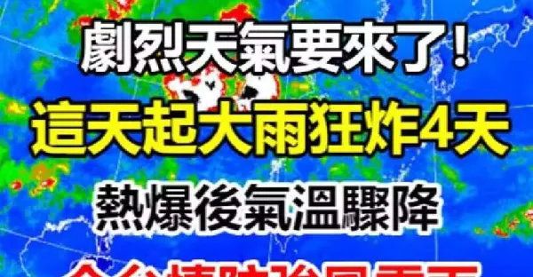 快訊/劇烈天氣要來了 熱爆後氣溫驟降「這天起雨狂炸4天」全台慎防強風雷雨