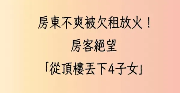 快訊/房東不爽被欠租放火!房客絕望「從頂樓丟下4子女」……