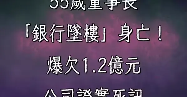 驚!55歲董事長「銀行墜樓」身亡!爆欠1.2億元 公司證實死訊