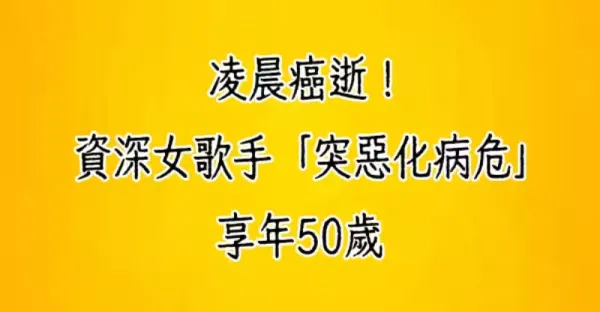 凌晨癌逝!!資深女歌手「突惡化病危」享年50歲
