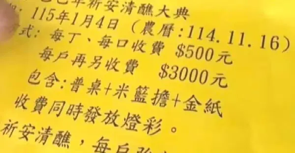 溪湖鎮24年一次清醮 廟方「強制」收普桌費引民怨