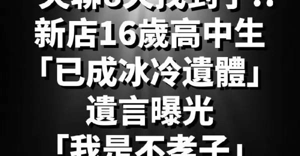 失聯8天找到了!新店16歲高中生「已成冰冷遺體」 遺言曝光「我是不孝子」