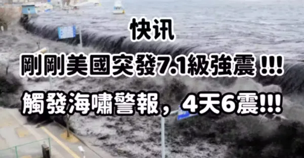 快訊/剛剛,美國突發7.1級強震 !!!觸發海嘯警報,4天6震!!!!!