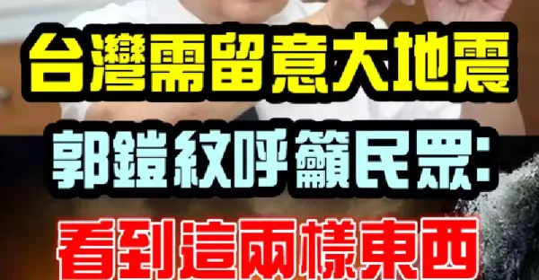 台灣需留意大地震!郭鎧紋呼籲民眾:看到這兩樣東西,趕緊逃!