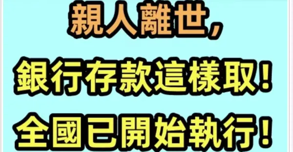 銀行提款「新規」來了:親人離世後,銀行存款這樣取!全國已開始執行!