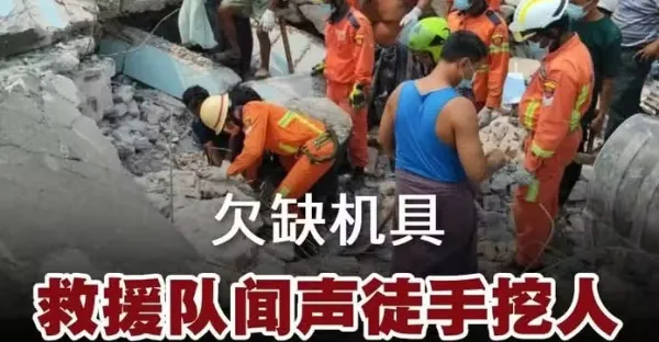 緬甸7.7級強震,欠缺機具,救援隊聞聲徒手挖人