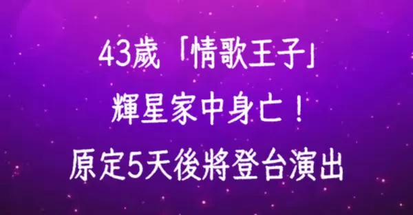 43歲「情歌王子」輝星陳屍家中! 原定5天後將登台演出
