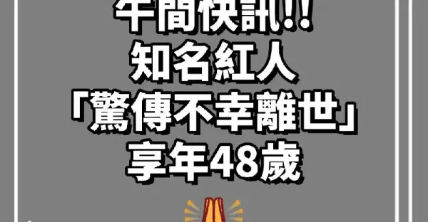 午間快訊!知名紅人「驚傳不幸離世」享年48歲