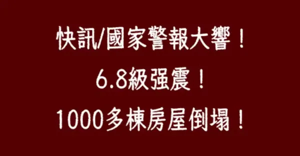 快訊/國家警報大響!6.8級強震!逾千棟房屋倒塌!
