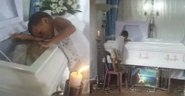 小男孩不知道媽媽已經去世,還趴在棺木上痴望著她,當阿姨聽到他問出「這一個問題」心臟都快裂開了…