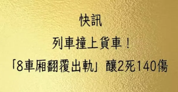 快訊/列車撞上貨車!「8車廂翻覆出軌」釀2死140傷……