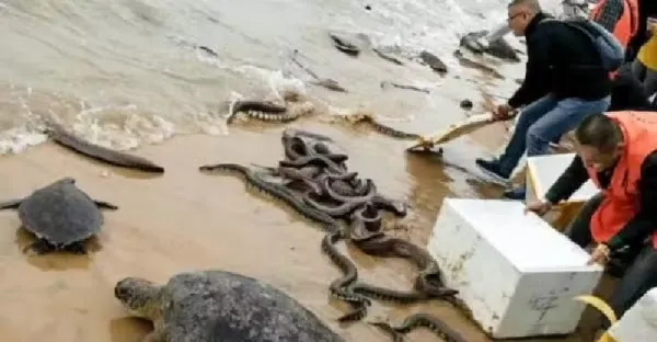 無知和尚帶信徒把「蟒蛇」放生到海里,晚上海灘卻出現讓遊客想吐的造孽東西!所有人都罵翻了!