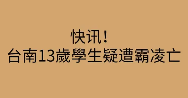 快訊/台南13歲國中生猝死 母崩潰:兒被霸凌廁所餵毒