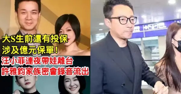 大S生前投保億元保單!汪小菲連夜帶娃離台,? 小S,許雅鈞家族密會錄音流出……