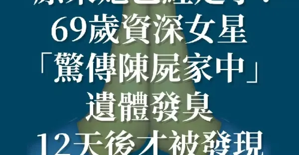 原來她已經走了!70歲資深女星「驚傳陳屍家中」遺體發臭....12天後才被發現