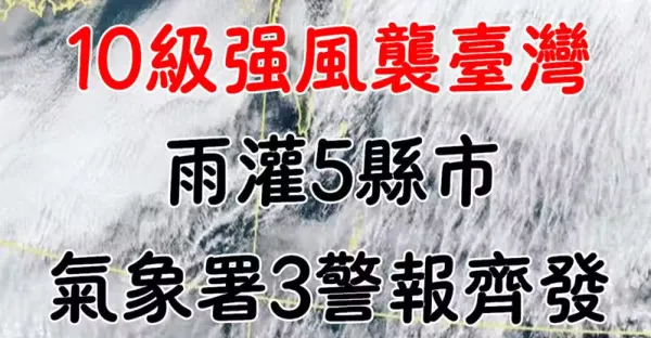 快訊 / 10級強風襲台灣 「雨灌5縣市」 氣象署3警報齊發!