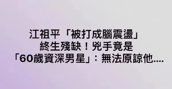 江祖平「被打成腦震盪」終生殘缺!!兇手竟是「60歲資深男星」:無法原諒他....