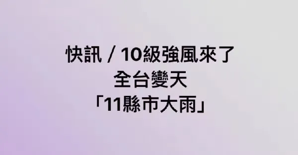快訊/10級強風來襲 ,全台變天「11縣市大雨」