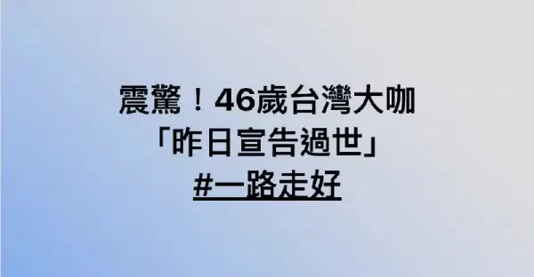 震驚!46歲台大咖「昨日宣告過世」一路走好!